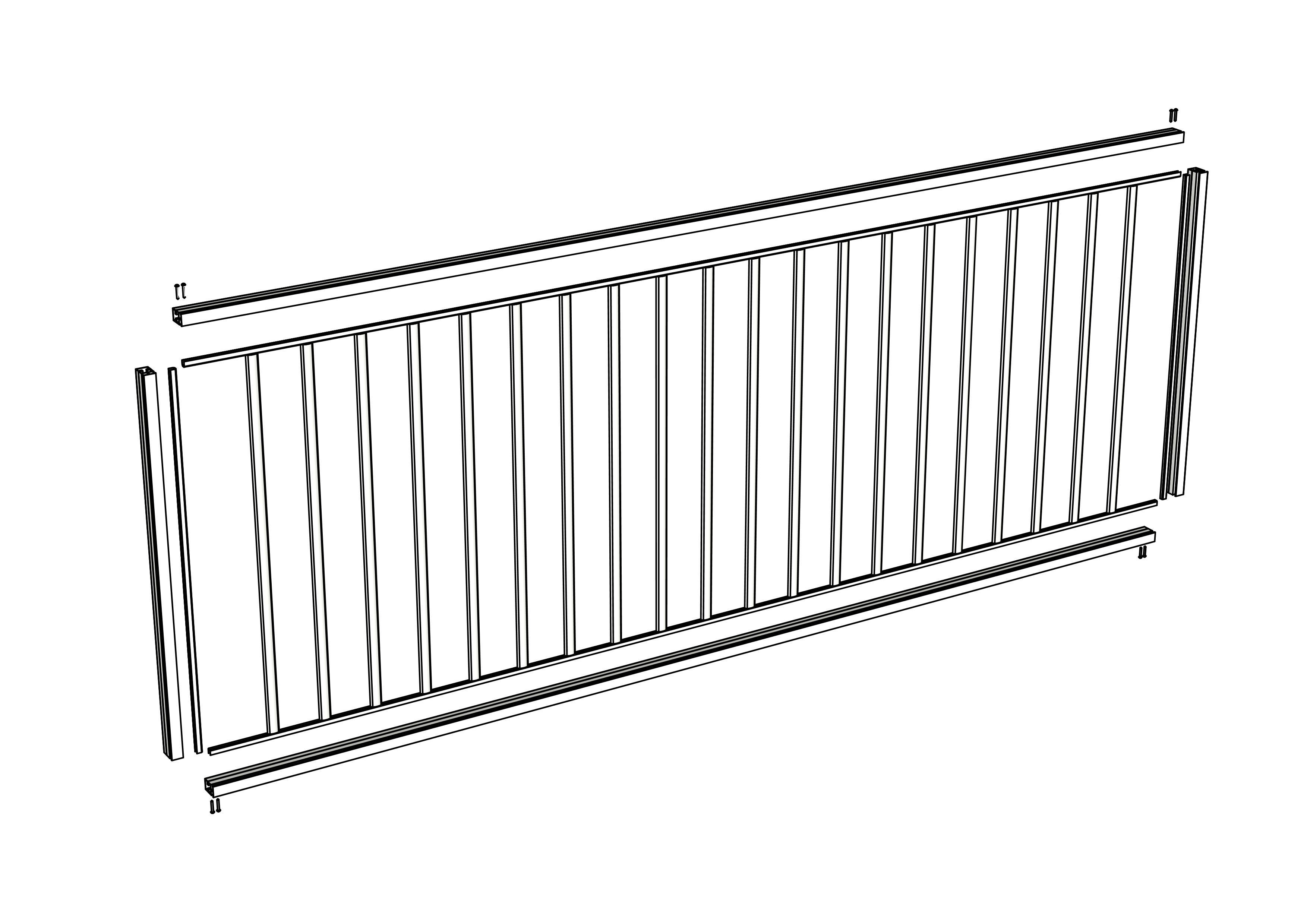 Crossbar Systems This railing consists of an aluminium frame in which vertical aluminium crossbars are fitted. There is a choice of two types of crossbars, which can be combined with panelling.