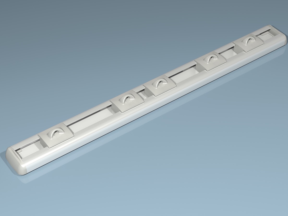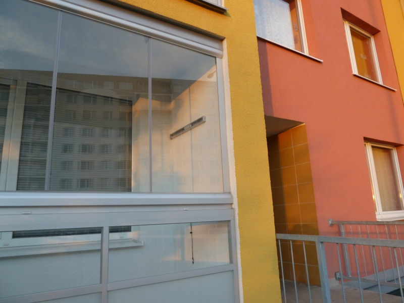 The drying rack is made of aluminium profiles with plastic components. It is screwed onto the side walls of a loggia with either fixed or sliding hooks for fastening the clothes line. Sliding the hooks allows the leaves of the glazed loggia to be opened into the interior.